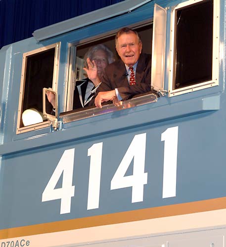 "When we set out to design the Bush Library and Museum, I did not want it to be about just one person – rather, we wanted to touch a broader cross-section of American life, encompassing an eventful period of our history," President Bush said. "The 'Tracks of the Iron Horse' and the unveiling of UP 4141 is the latest example of our commitment to attracting the most unique, educational, and entertaining exhibits we can – and I am deeply grateful to Dick Davidson and Union Pacific for their friendship and support. If we had the UP 4141 back when I was still in Office, I might have left Air Force One behind more often!"