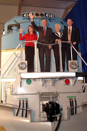 The unveiling ceremony is a fitting prelude to the grand opening of "Trains: Tracks of the Iron Horse," on Nov. 7, 2005, at the Bush Library. The much-anticipated exhibit covers the rich technological, social and economic history of the railroad industry.